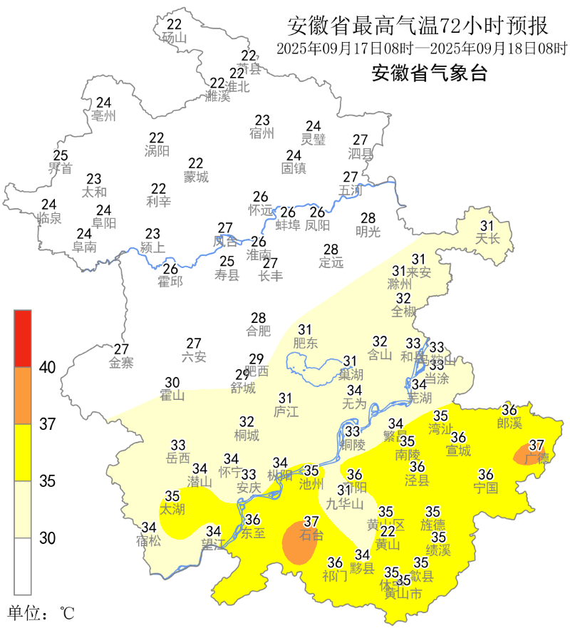 安徽省气象台预计,15日沿江江南、16日沿淮淮河以南、17日江南部分地区最高气温可达35℃以上,其余时段全省基本无高温天气。