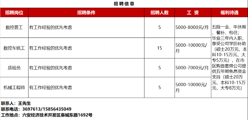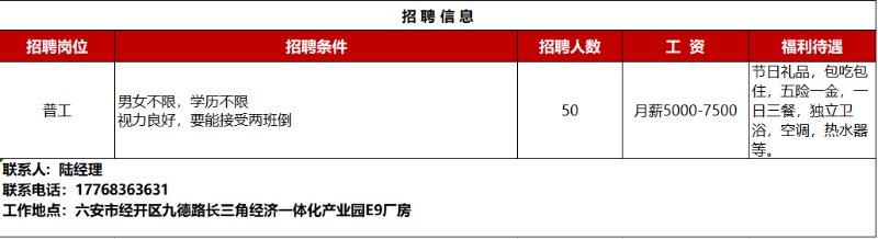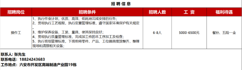【招聘】六安最新招聘信息