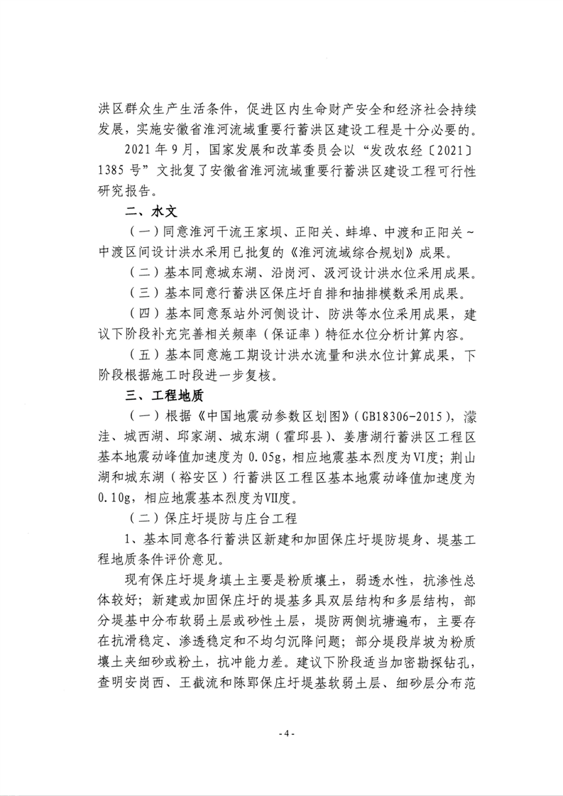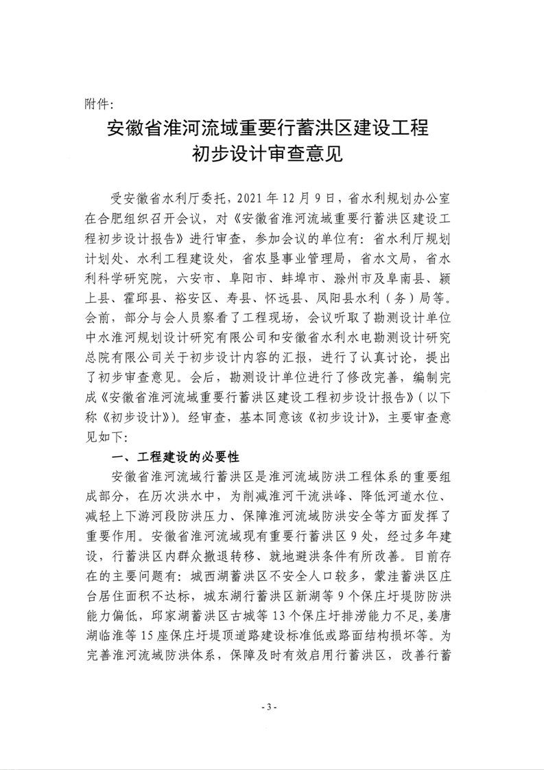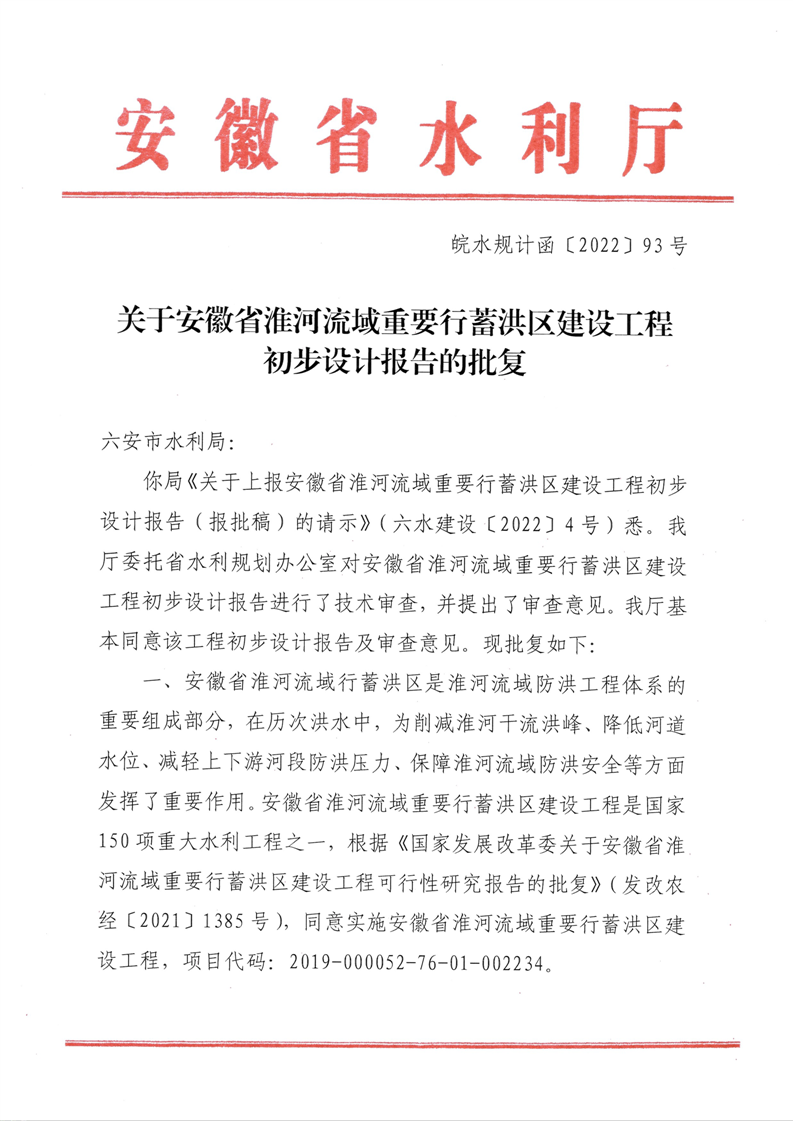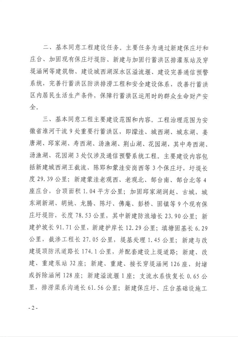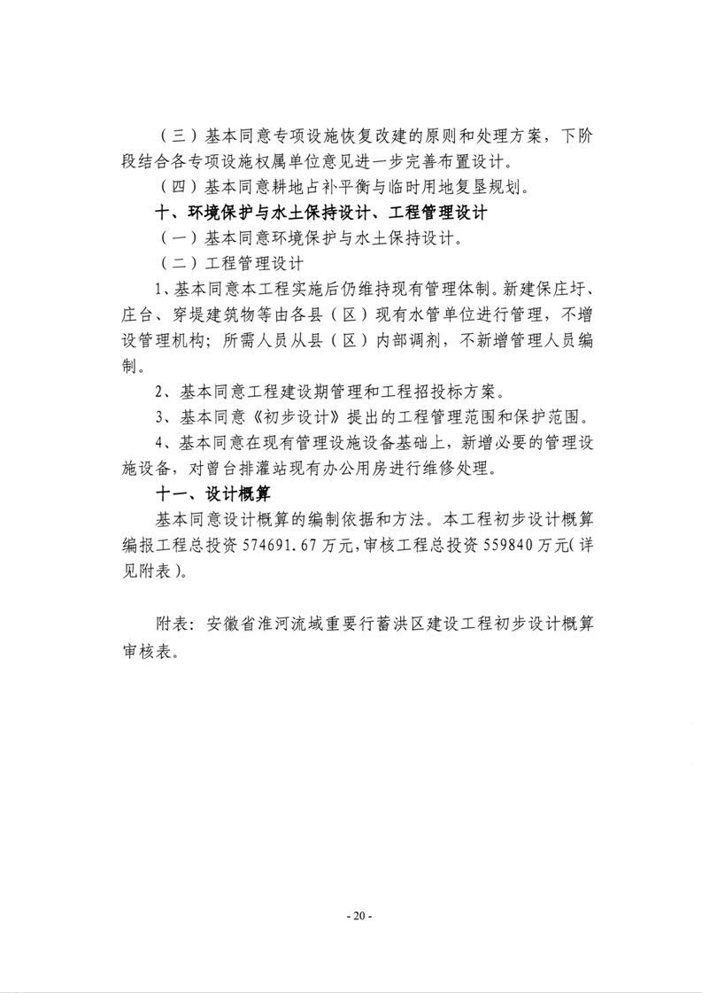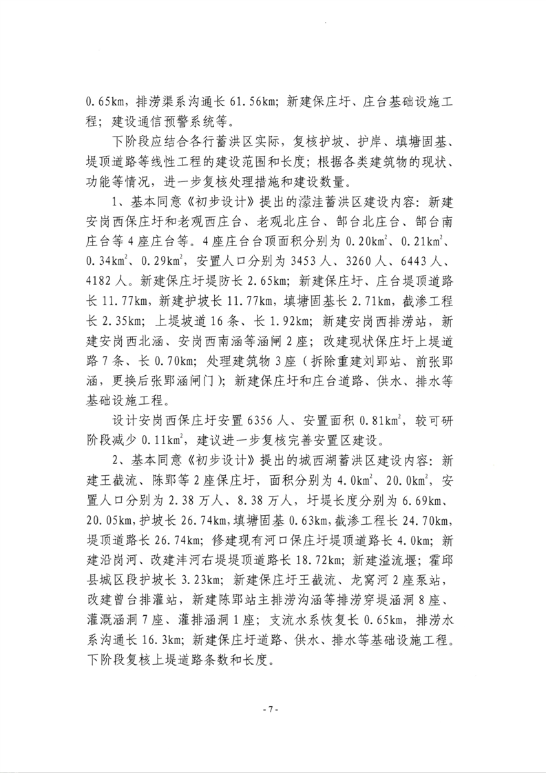 关于安徽省淮河流域重要行蓄洪区建设工程初步设计报告的批复