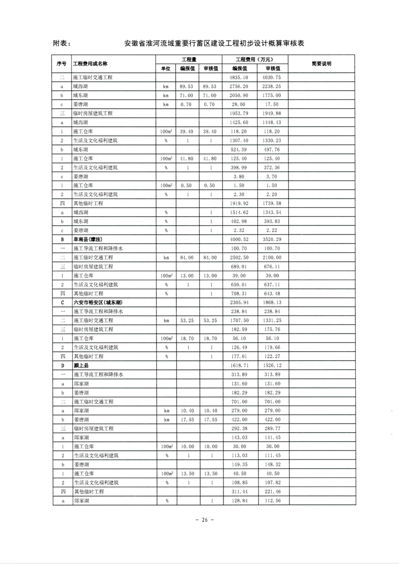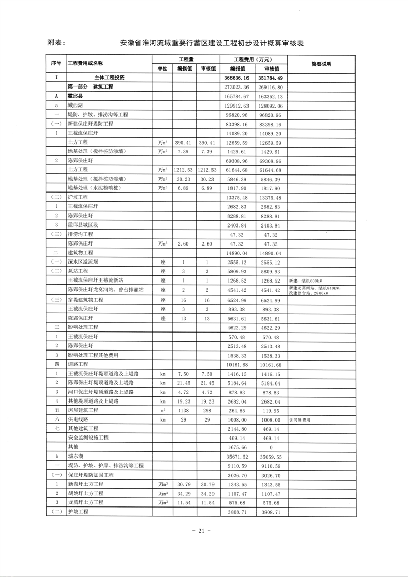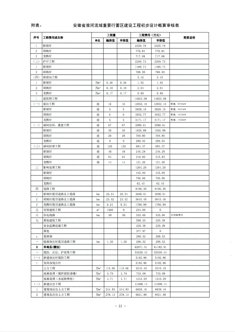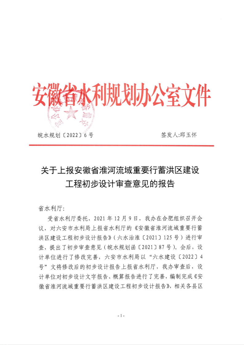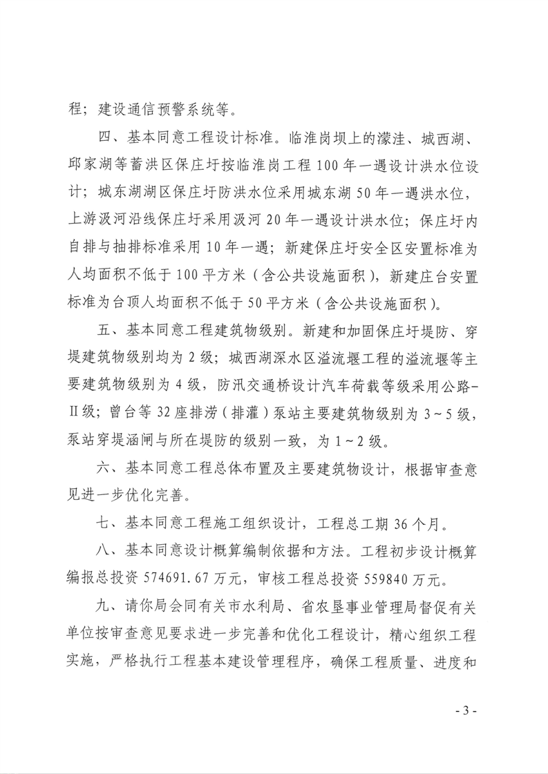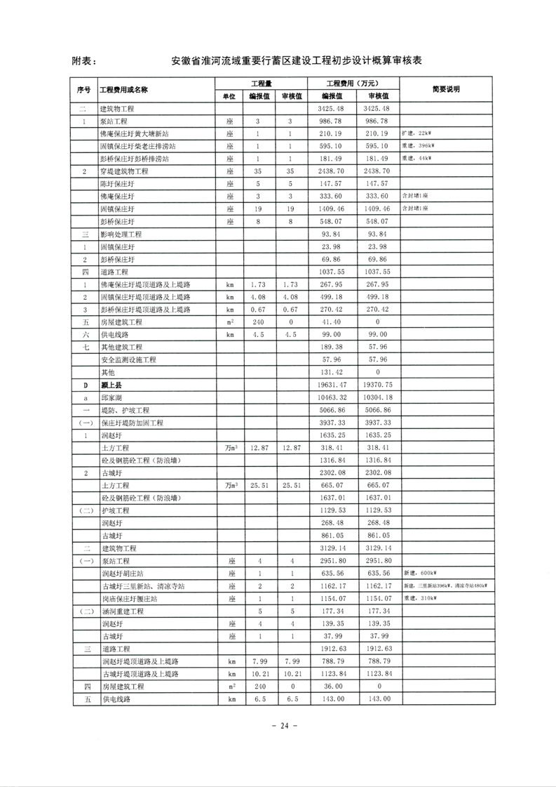 关于安徽省淮河流域重要行蓄洪区建设工程初步设计报告的批复