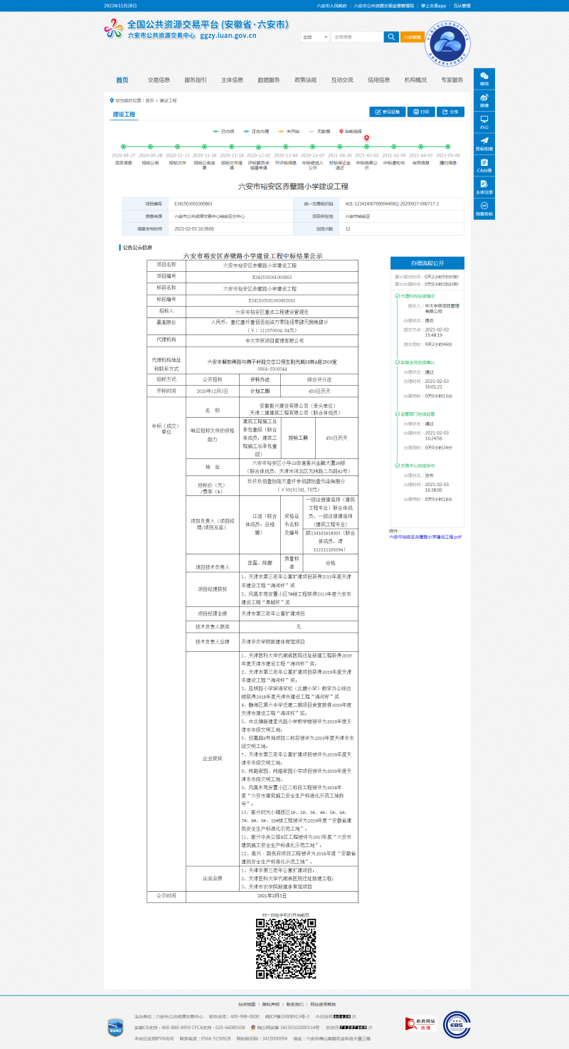 六安市裕安区赤壁路小学建设工程中标结果公示