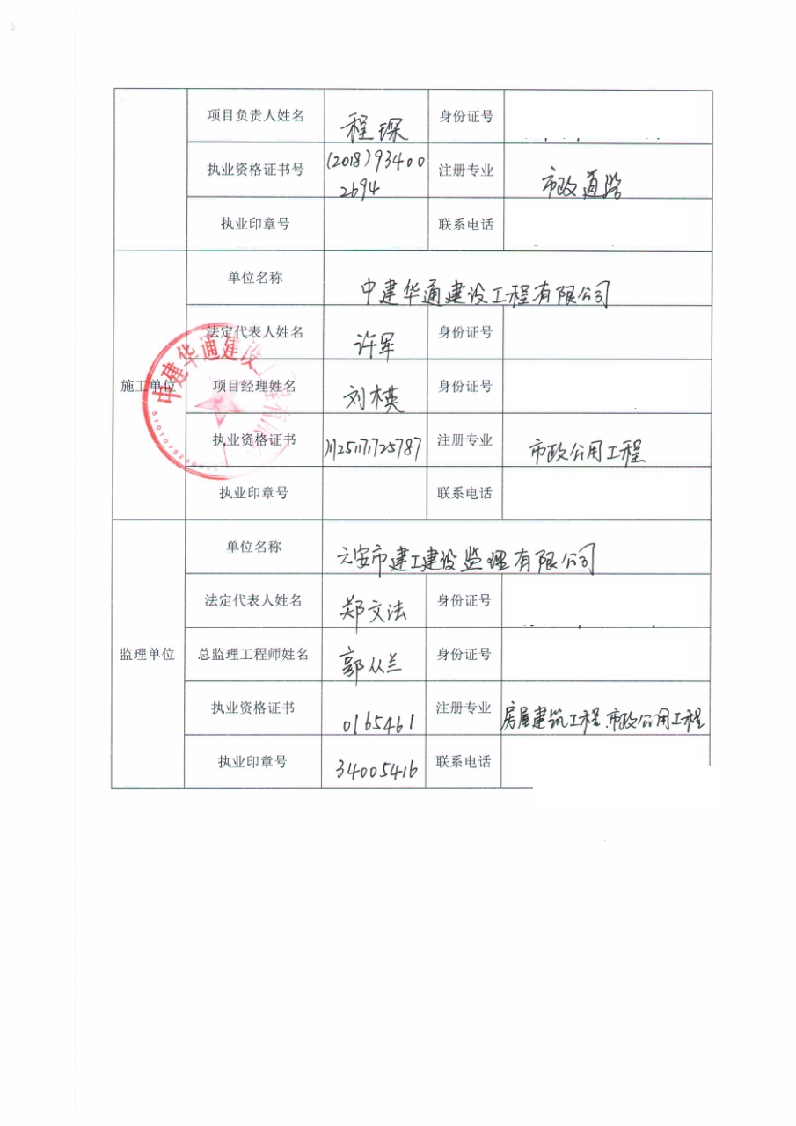 黄小桥路(武陟山路-天堂寨路)道路项目负责人质量终身责任信息档案