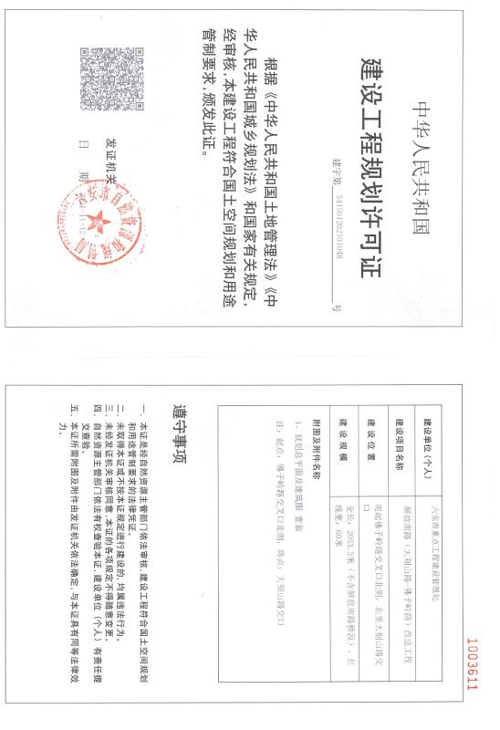 解放南路(大别山路-佛子岭路)改造工程建设工程规划许可证