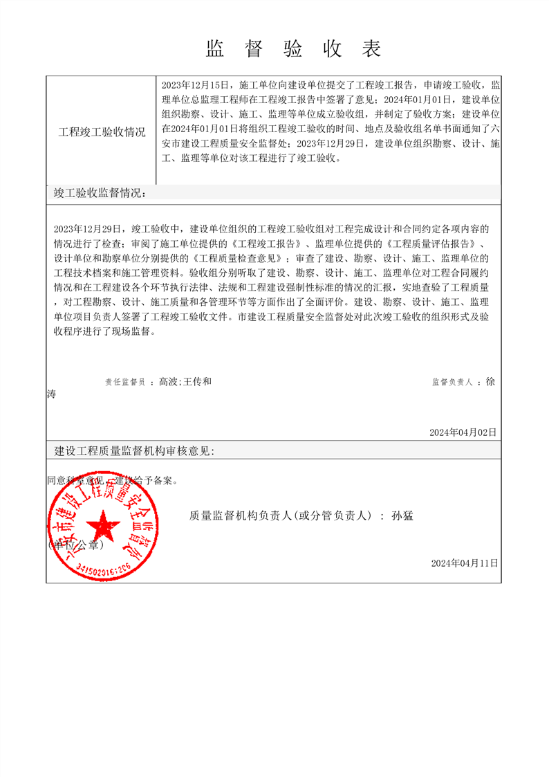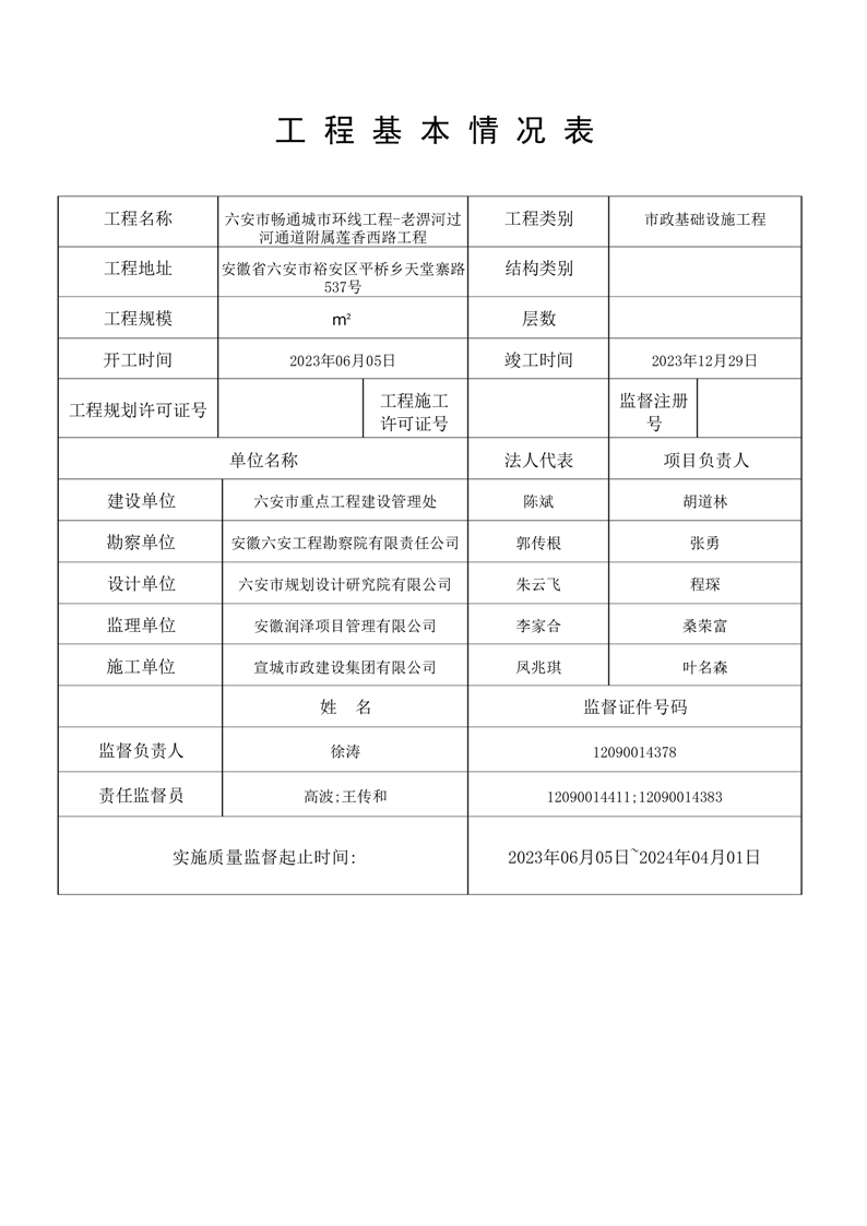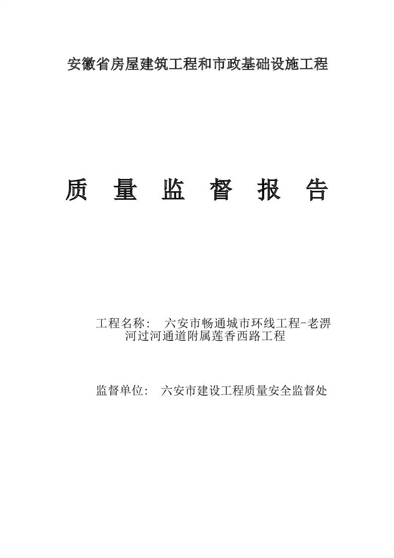 六安市畅通城市环线工程—老淠河过河通道附属莲香西路工程质量监督报告