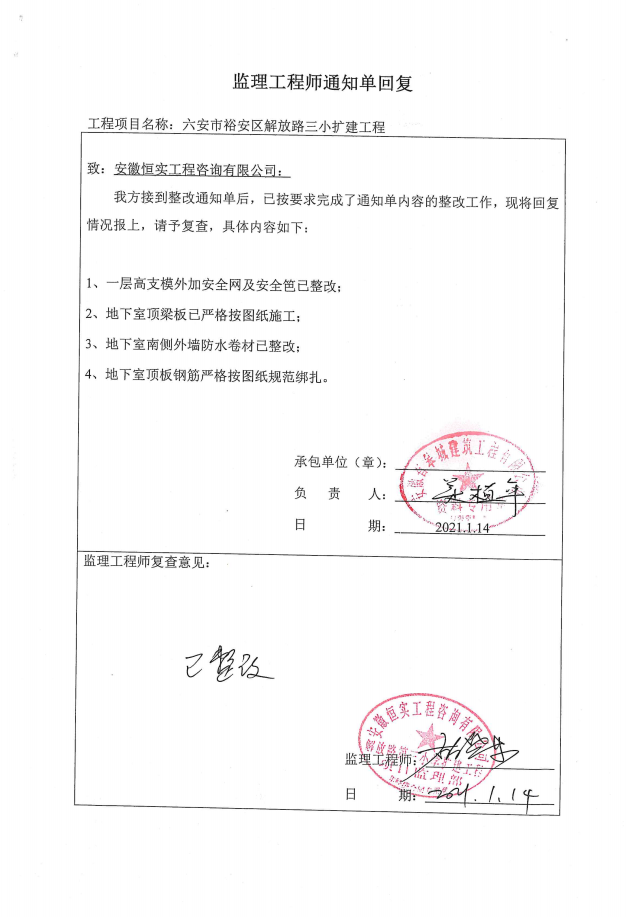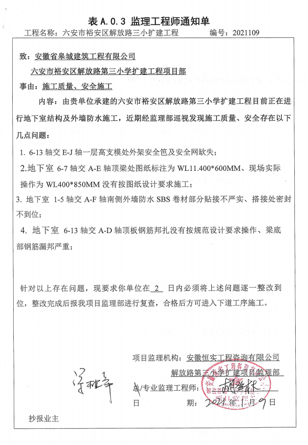 解放路三小扩建工程质量监督检查情况