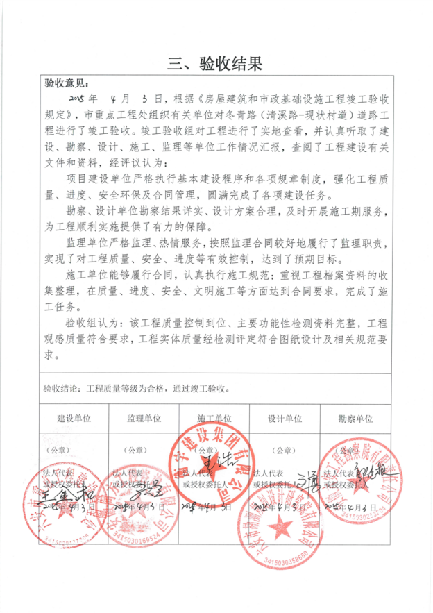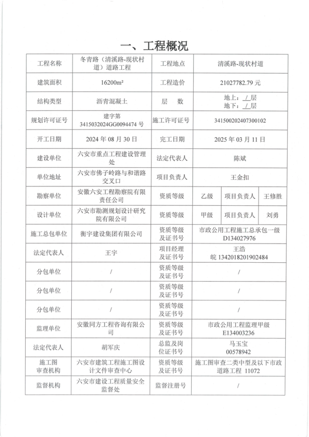 冬青路(清溪路-现状村道)道路工程竣工验收报告书