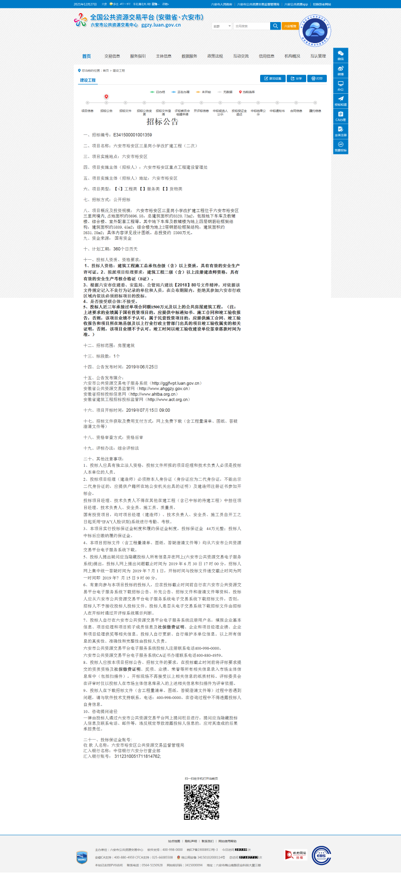 三里岗小学改扩建工程招标公告