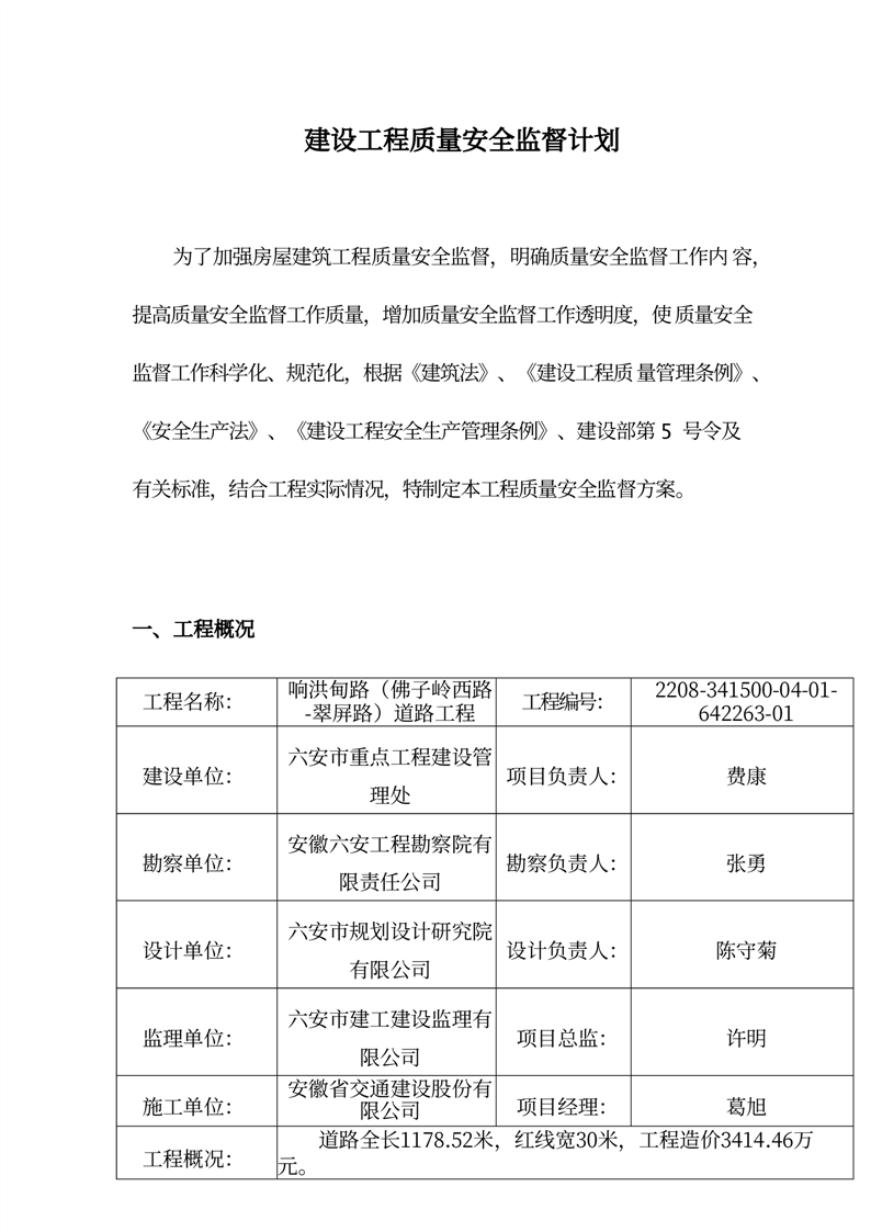 响洪甸路(佛子岭西路-翠屏路)道路工程质量安全监督