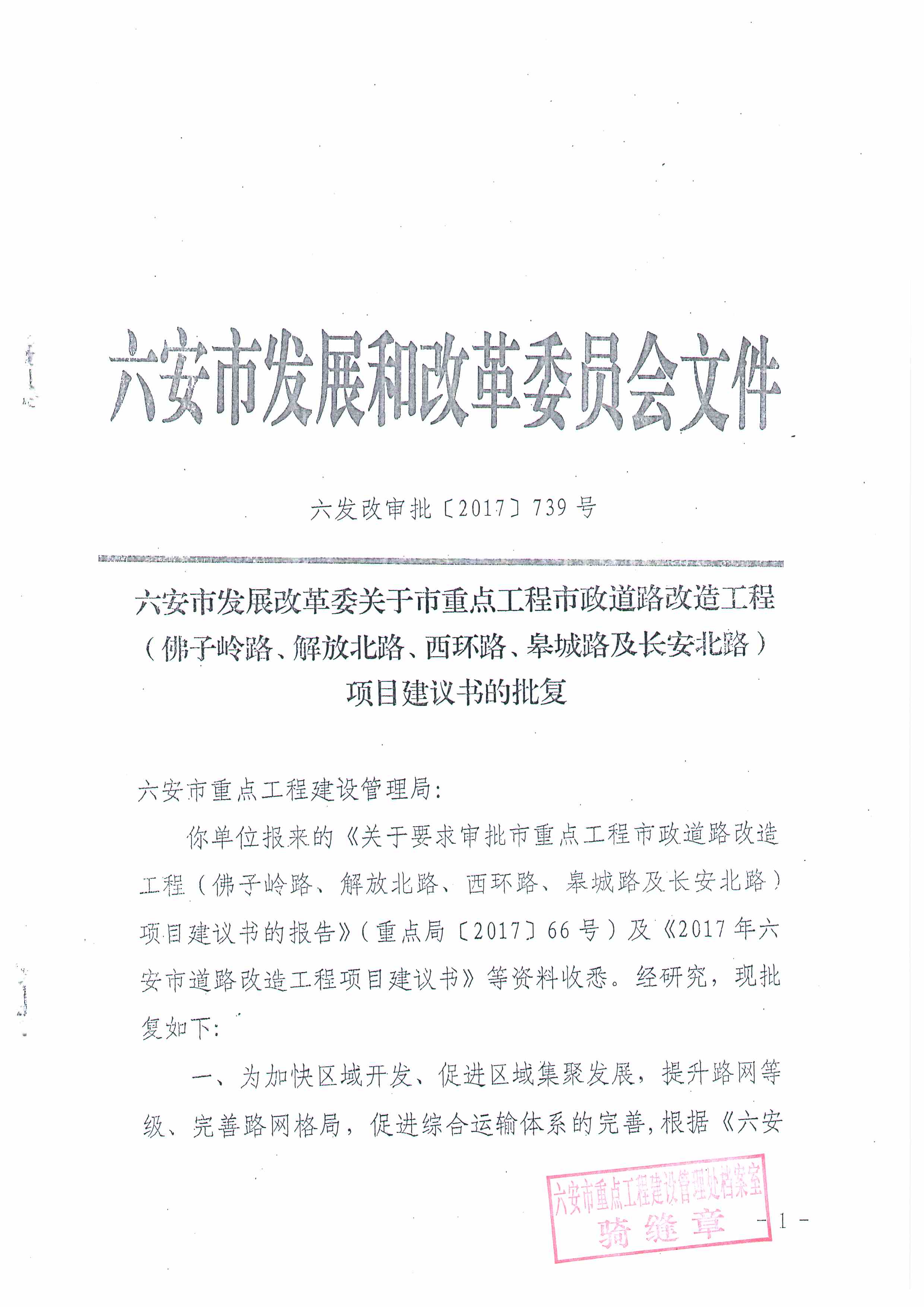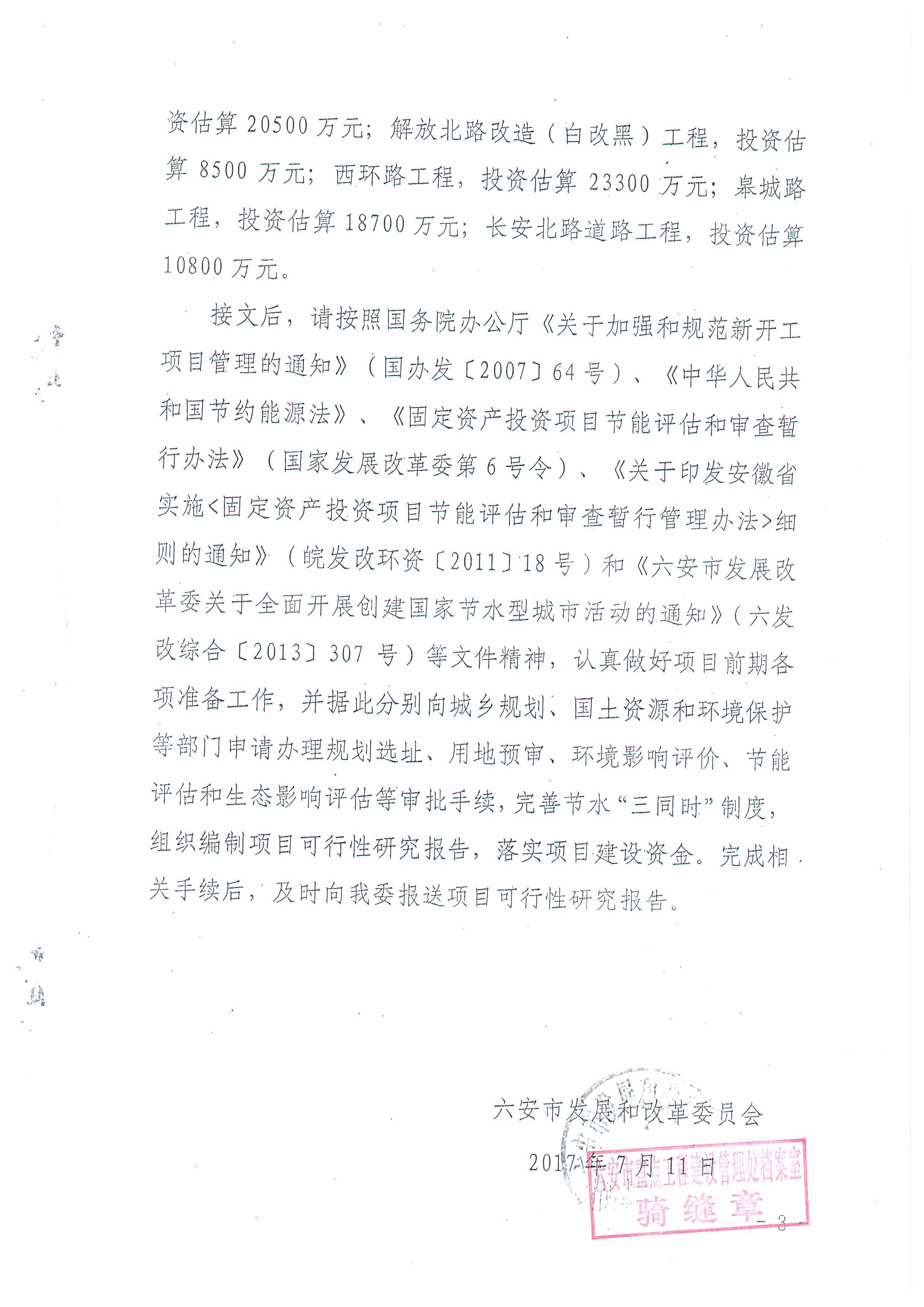 西环路建设项目建议书的批复