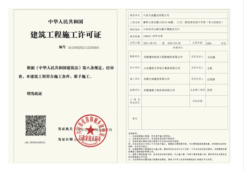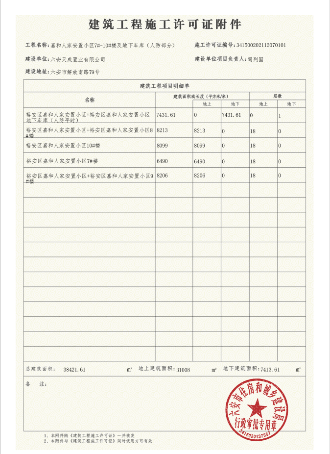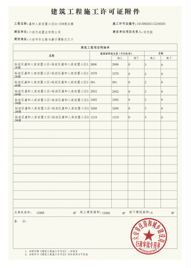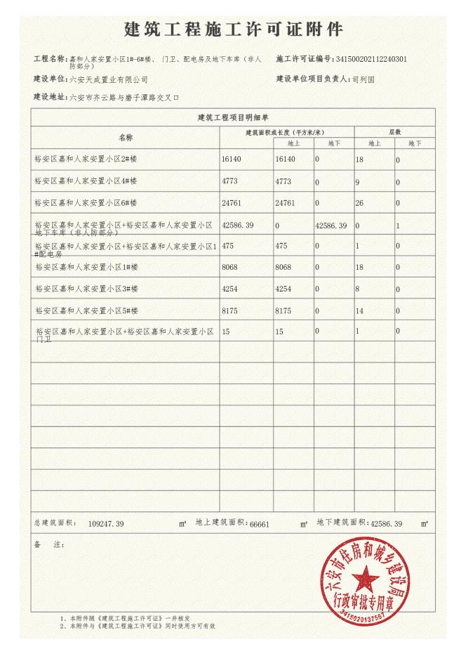 裕安区嘉和人家安置小区项目建筑工程施工许可证