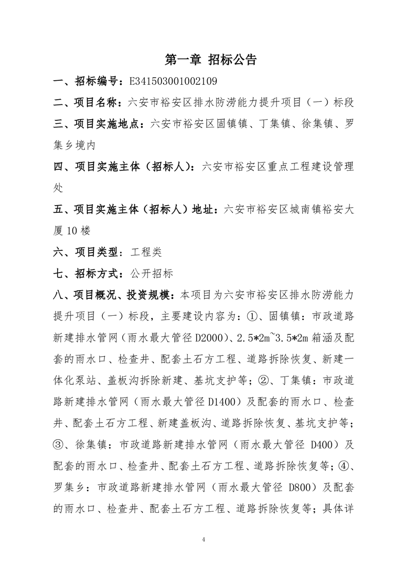 裕安区排水防涝能力提升项目(一标段)招标文件