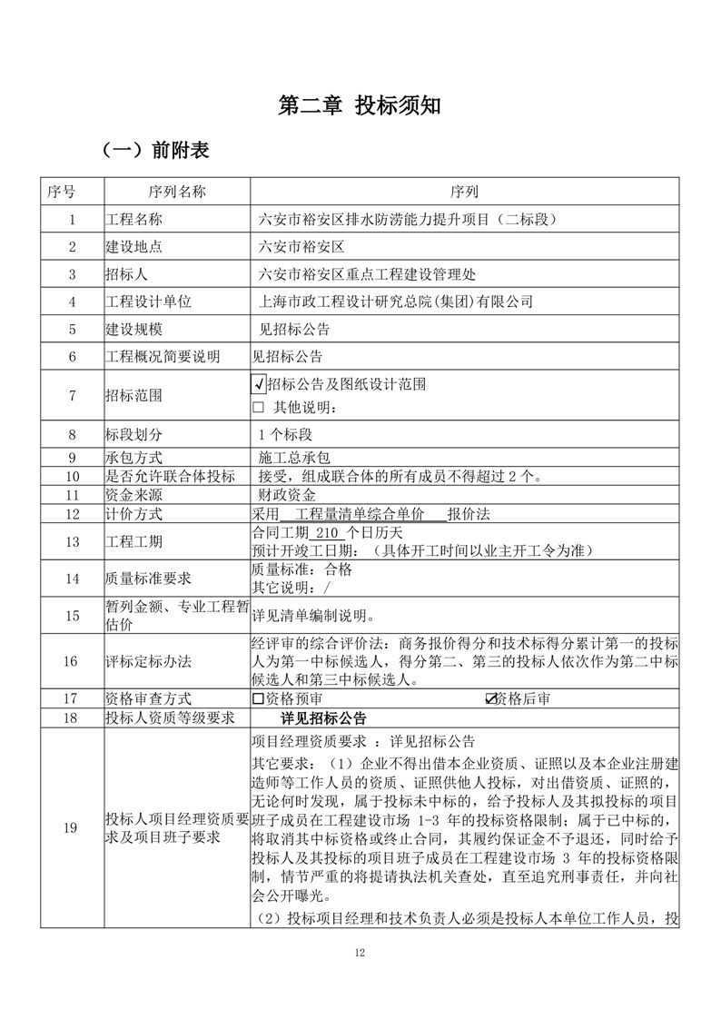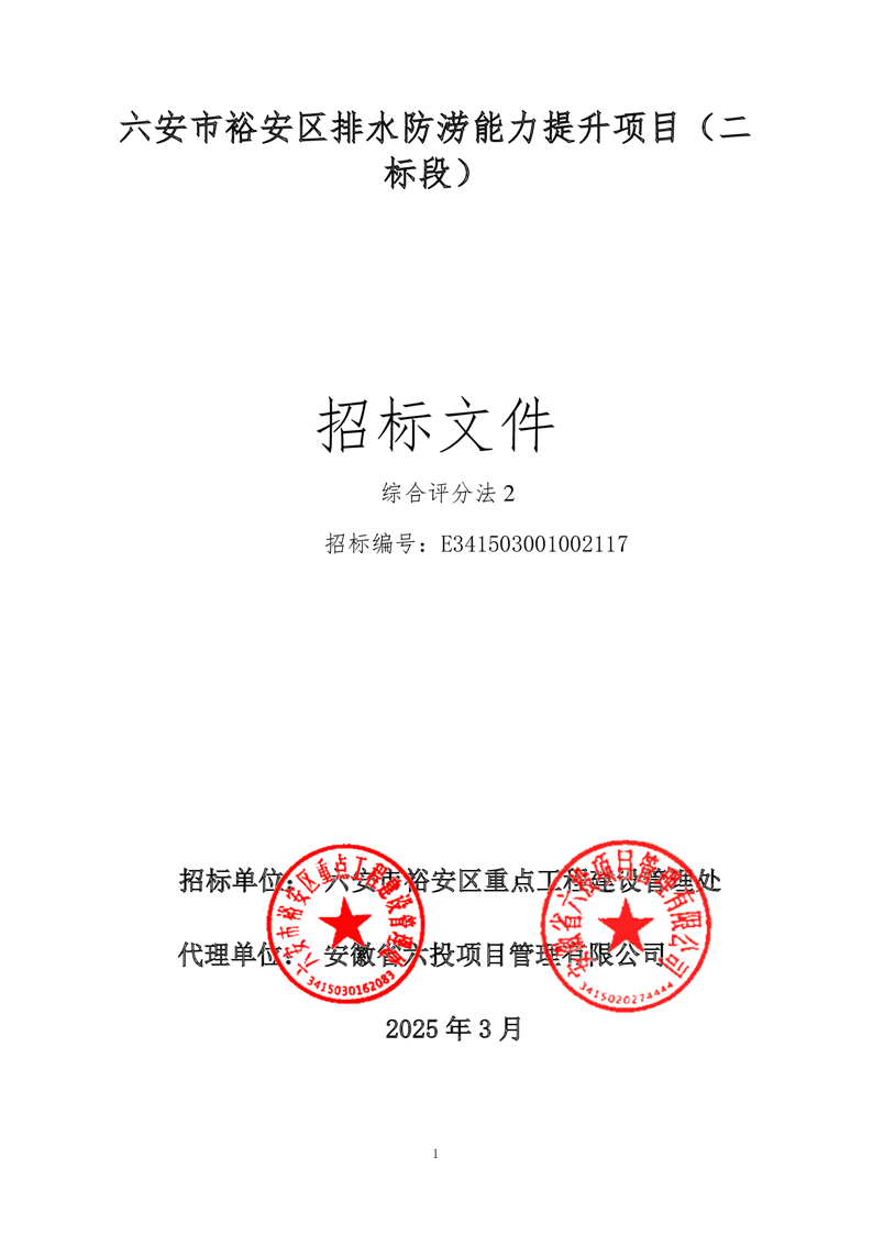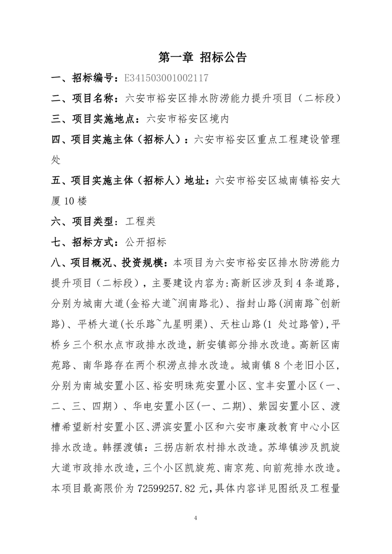 裕安区排水防涝能力提升项目(二标段)招标文件