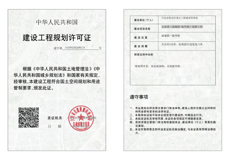 玉泉巷(丽康路-振华路)道路工程建设工程规划许可证
