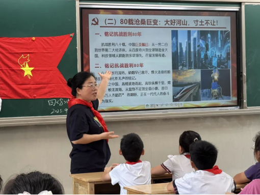 光影研学则为思政教育搭建了跨越时空的桥梁。9月1日晚,梅花小学、雷锋路小学等学校组织全校师生共同观看由教育部、中宣部、中央电视台联合制作的《铭记与奋斗》开学第一课。节目以数字化场景再现、沉浸式讲述、实景课堂等创新形式,生动还原了一段段波澜壮阔的抗战历史,深情讲述了一个个感人至深的英雄故事,让伟大抗战精神在光影中鲜活起来。观看结束后,学生们纷纷提笔写下感悟:“要学习抗战英雄不畏强暴、血战到底的精神,更要铭记历史、努力学习,用知识武装头脑,将来为振兴中华贡献自己的力量。”字里行间满是少年学子的赤诚与担当。