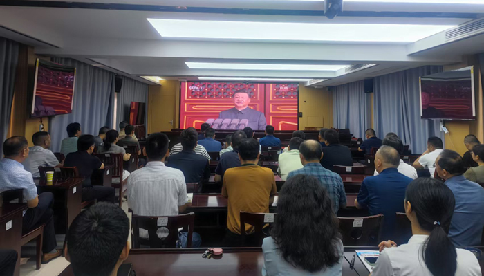 在区教体局五楼会议室,机关党员干部齐聚一堂,全程认真收看纪念大会实况。大家全神贯注、认真聆听,纷纷表示要传承和弘扬伟大抗战精神,将其转化为推动裕安教育高质量发展的强大动力。全区教育工作者将以抗战精神为引领,将其融入教育教学全过程,努力培养具有爱国情怀和责任担当的时代新人。