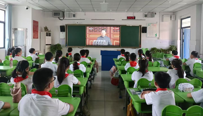 与此同时, 全区各中小学幼儿园同步收听收看纪念中国人民抗日战争暨世界反法西斯战争胜利80周年大会实况直播。广大师生通过集中观看大会直播、召开主题班会等多种形式,积极参与这场生动的爱国主义教育。活动中,师生们深入了解了抗战历史,深切感受到革命先烈崇高的爱国精神和英勇无畏的英雄气概。学生们在观看后深受触动,纷纷表示要铭记历史、珍惜和平、勤奋学习,立志将来为祖国的发展贡献力量。