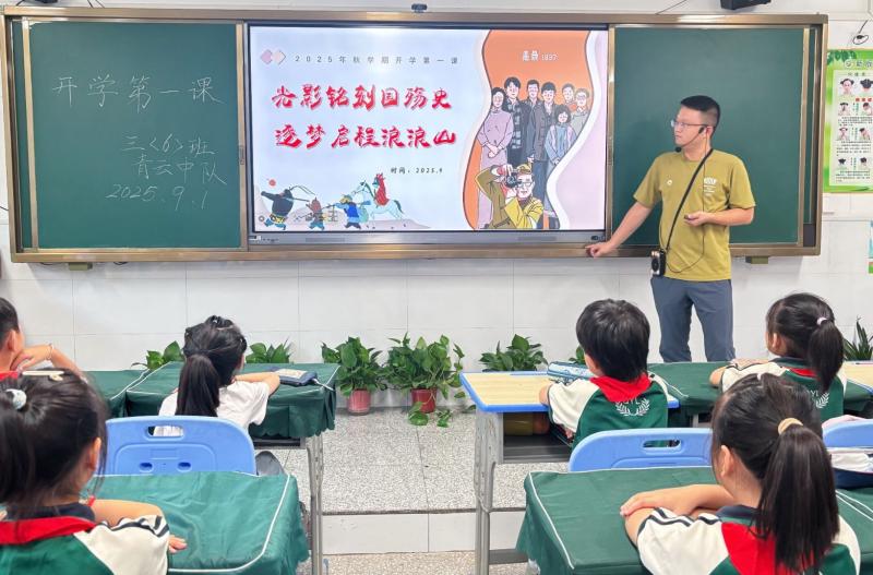 校园内的第一课——主题班会。9月1日,六安市齐云路小学各班级开展了以“光影铭刻国殇史 逐梦启程浪浪山”为主题的开学第一课班会。师生们共同告别假期,用庄重而温暖的方式叩响新学期的大门。