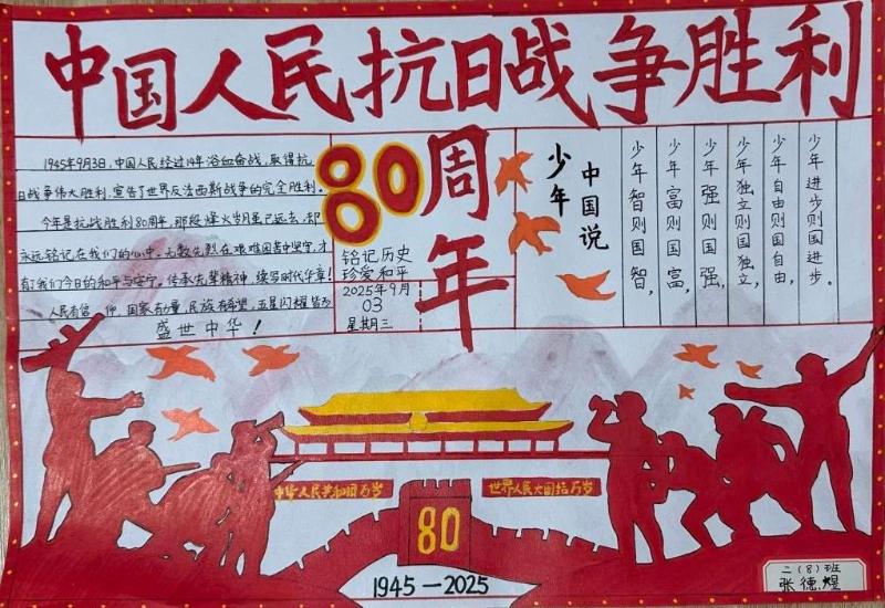 两堂“第一课”,托举着童心飞向更广阔的苍穹。一份手抄报,是同学们对历史的铭记,对先烈的致敬,对和平的珍视,对未来的期许,同时也体现了学校思政教育“铸魂育人”的实效。新学期的乐章已然奏响,未来、梦想与责任的种子,正乘着金风,静待一个繁花似锦的明天!