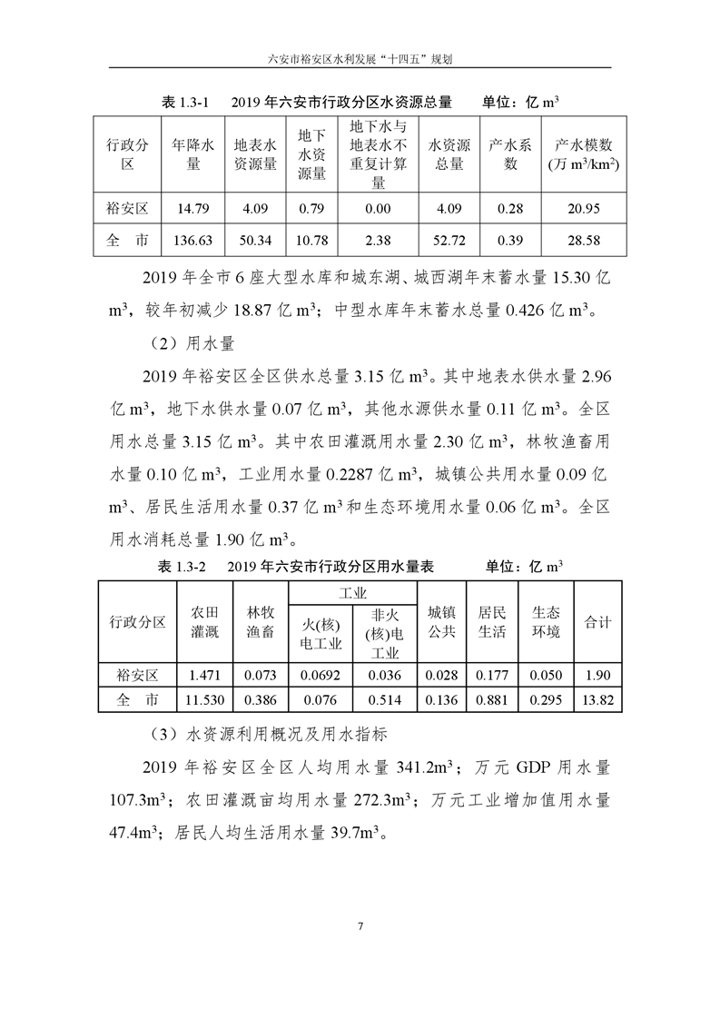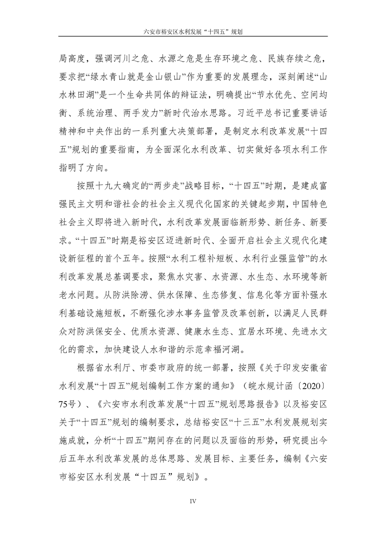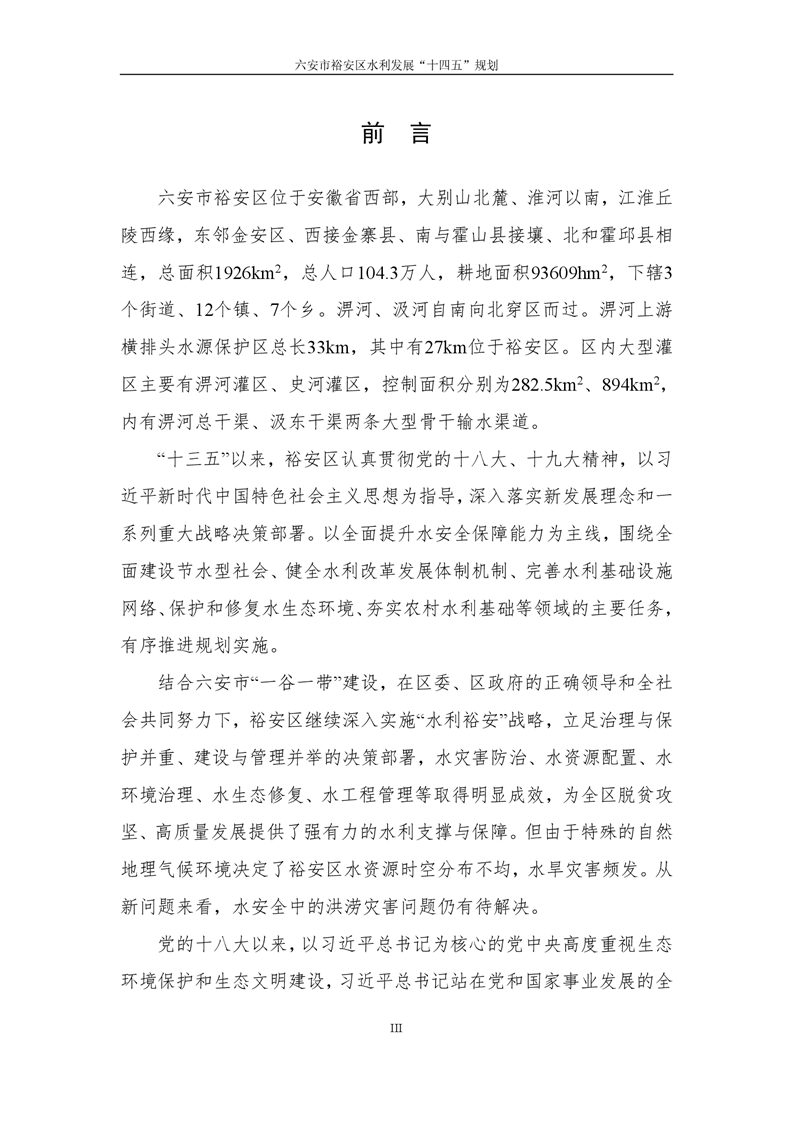 六安市裕安区水利发展“十四五”规划
