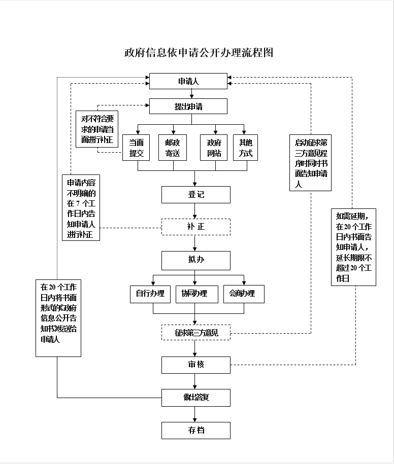 对于公开权利人的申请,能够当场答复或者提供政府信息的,当场予以答复或者提供政府信息;不能当场答复或者提供政府信息的,自收到申请之日起20个工作日内根据下列不同情况进行处理: