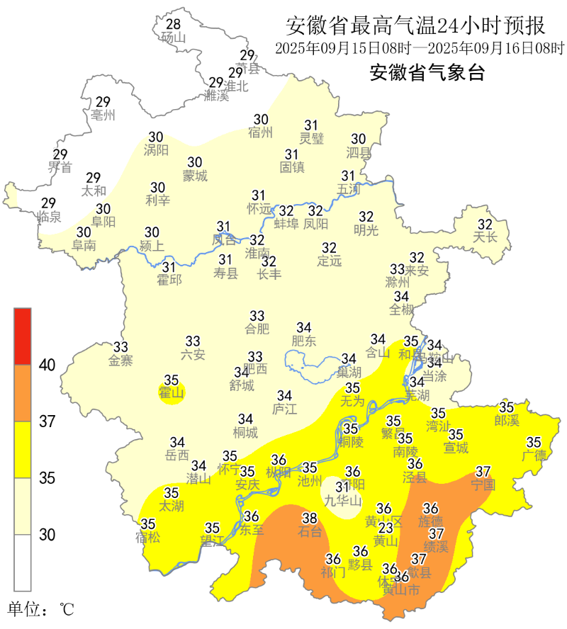 安徽省气象台预计,15日沿江江南、16日沿淮淮河以南、17日江南部分地区最高气温可达35℃以上,其余时段全省基本无高温天气。