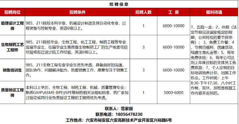 (9月18日) 更多企业招聘信息请登录六安市公共招聘网安徽朗盛环能科技有限公司