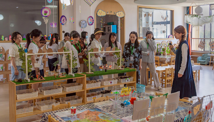 与会代表分组观摩园区环境和幼儿自主游戏活动。将军路幼儿园内,充满童趣的装饰、功能齐全的活动区域、孩子们天真烂漫的笑脸,无不展现出幼儿园良好的育人环境。孩子们在游戏中专注探索、快乐互动,生动呈现了寓教于乐的学前教育理念,也让大家切实感受到孩子们在园所的幸福成长。