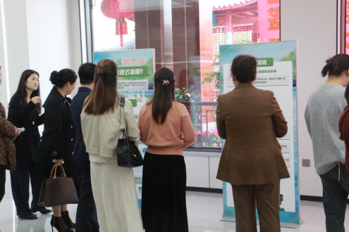 活动现场,通过展厅的展板和图解向观众展示裕安区白鹅发展的现状,以及裕安区支持白鹅产业发展相关政策的解读。