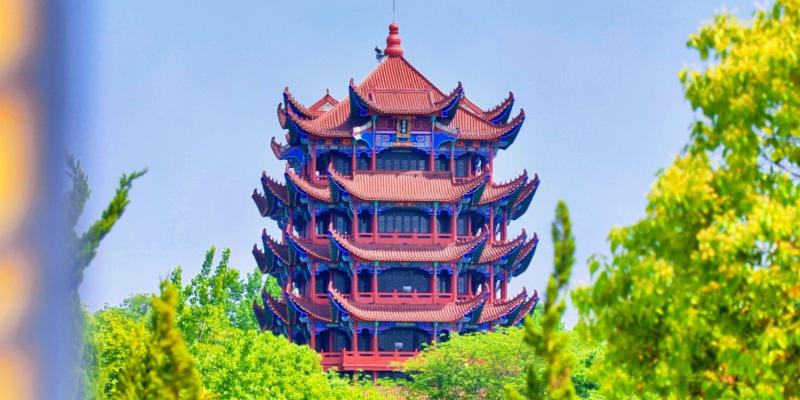 在裕安区苏埠镇横排头景区,有一座古韵悠然的中式塔楼。多层结构,红翘角,蓝柱红顶,塔尖高耸。周边绿树环绕,淡蓝天空映衬,色彩明艳,似一幅动人画卷,静候游客来赏。(陈睿)