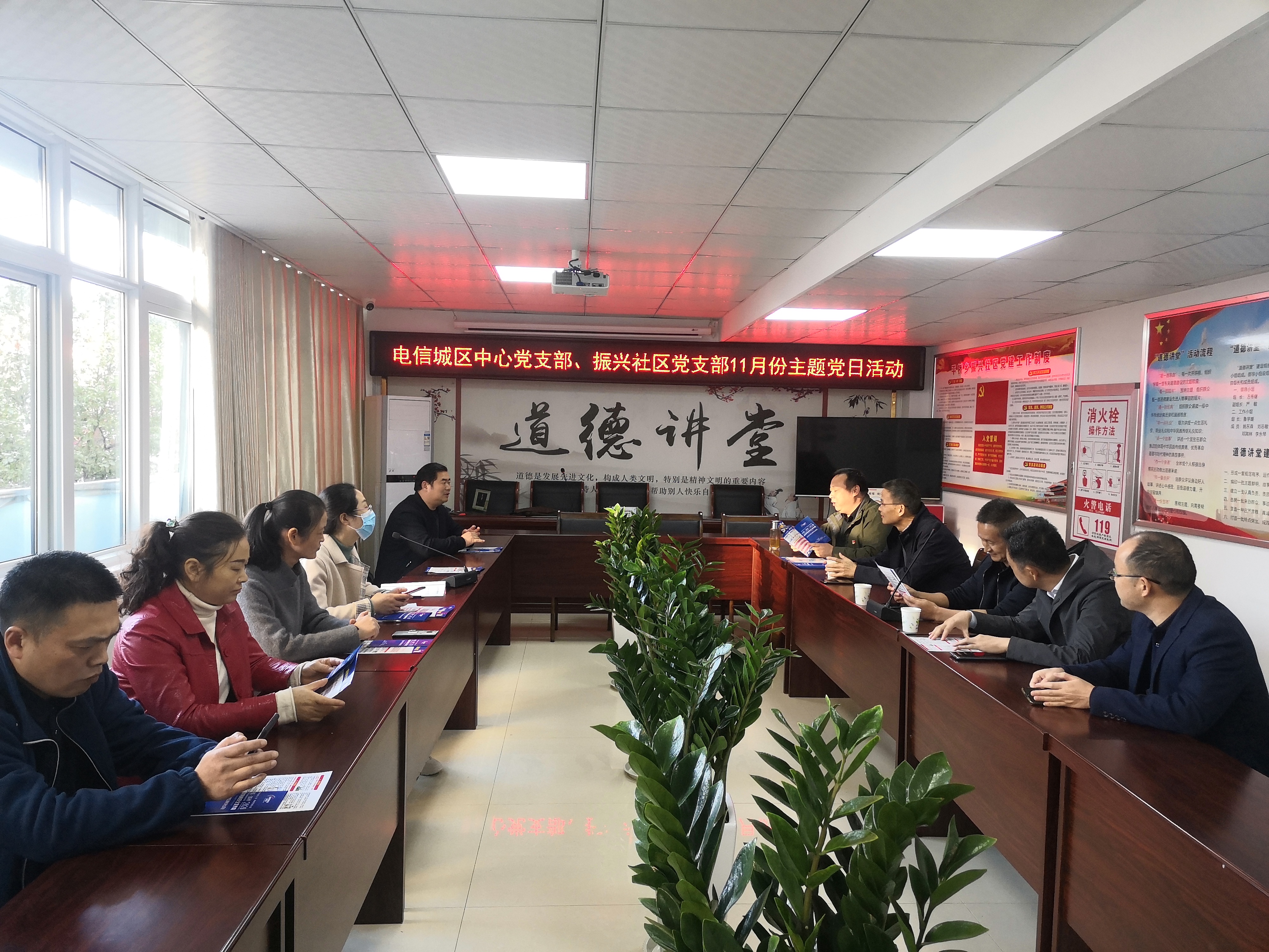 11月10日,平桥乡振兴社区党支部联合六安电信城区中心党支部在社区新时代文明实践站共同开展“防范电信诈骗 促进社区和谐”11月份主题党日活动。