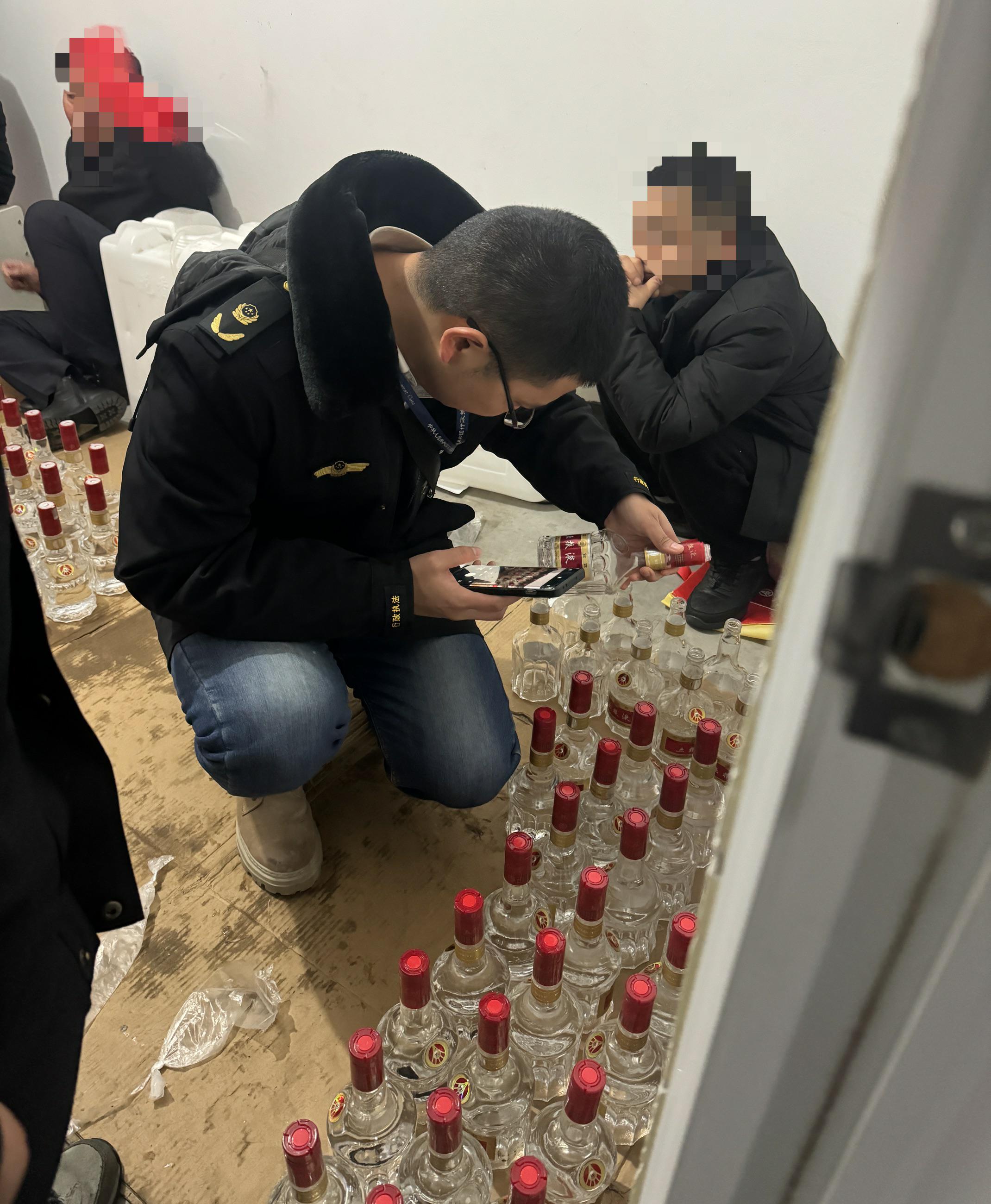 2024年2月5日,我局高新分局接到线索,联合裕安区公安局森林大队开展联合检查,发现位于裕安区城南镇红楼小区8栋1101室内有5人(负责人孙某某)正在生产制作涉嫌假冒“五粮液”白酒。