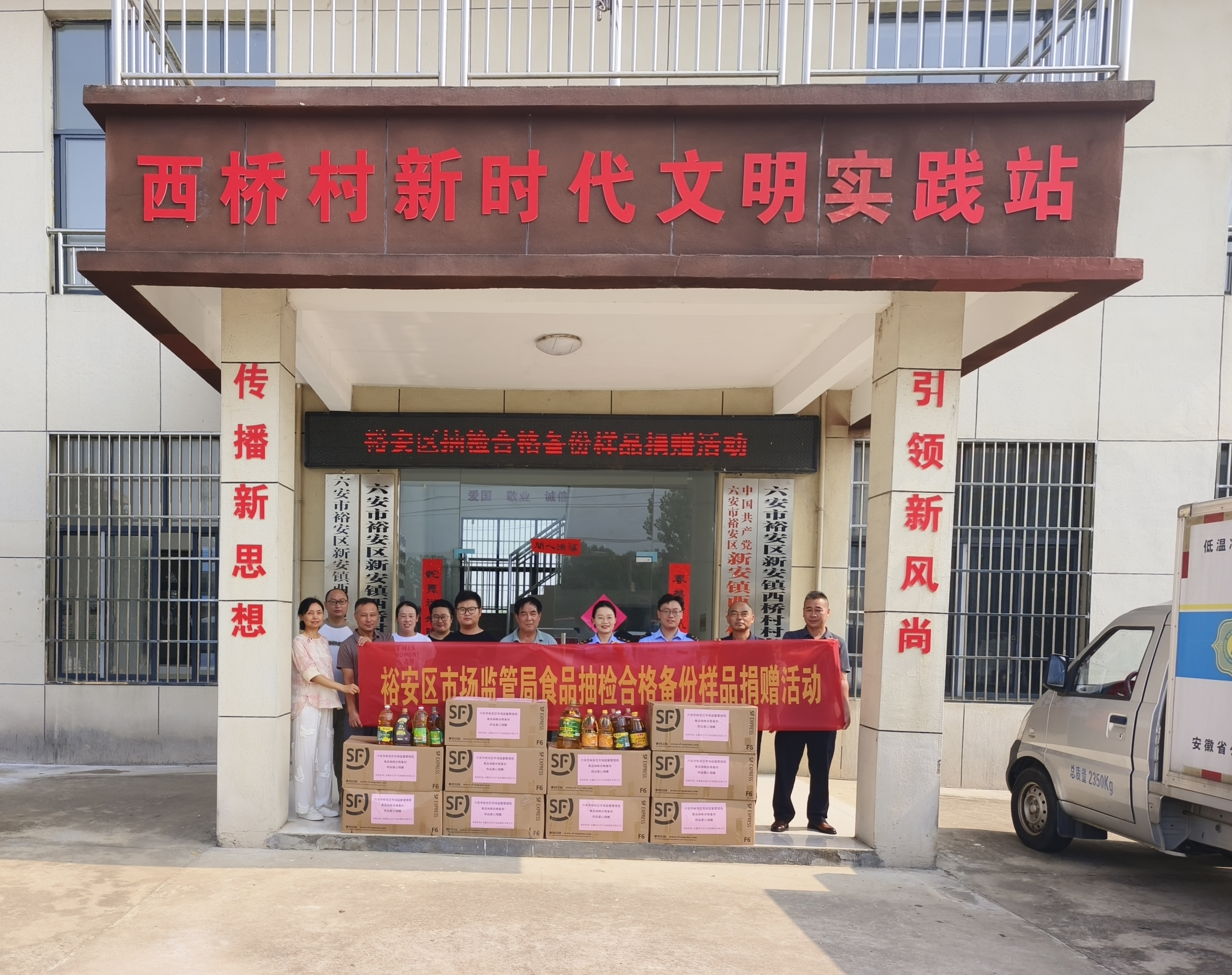 7月18日,裕安区市场监管局联合安徽省公信产品检测院有限公司到裕安区新安镇西桥村开展食品抽检合格备份样品捐赠活动,以实际行动践行“厉行节约、反对浪费”新风尚。