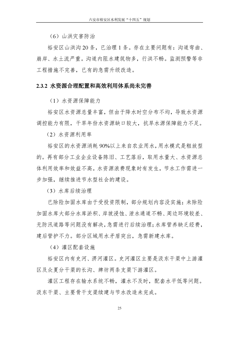六安市裕安区水利发展“十四五”规划