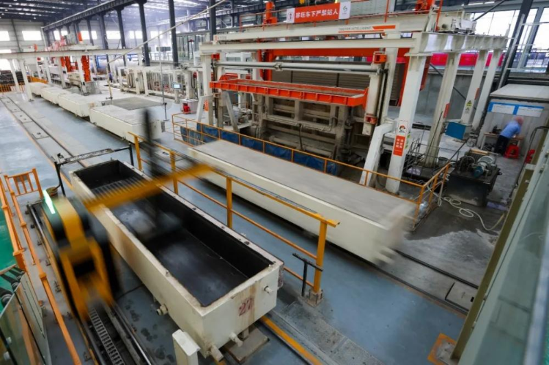 近年来,企业开发应用5G+工业互联网自主技术,打造数字化车间,保证了产品质量的稳定、管理运营的高效、高质。在企业AAC制造智能车间,浇铸、插拔钎、切割、蒸养等工序实现上下环节无缝对接,全程自动化操作。“我们高级数字化车间中控室,通过西门子S7协议的一些PLC数据以及传感器数据,包括一些伺服电机的状态,全部在中控电脑上显示。通过这里,我们可以控制现场的一些设备以及传感器的状态,可以看到整个车间的所有的生产流程。”安徽高迪科技发展中心自动化总工程师姜义朋介绍说。